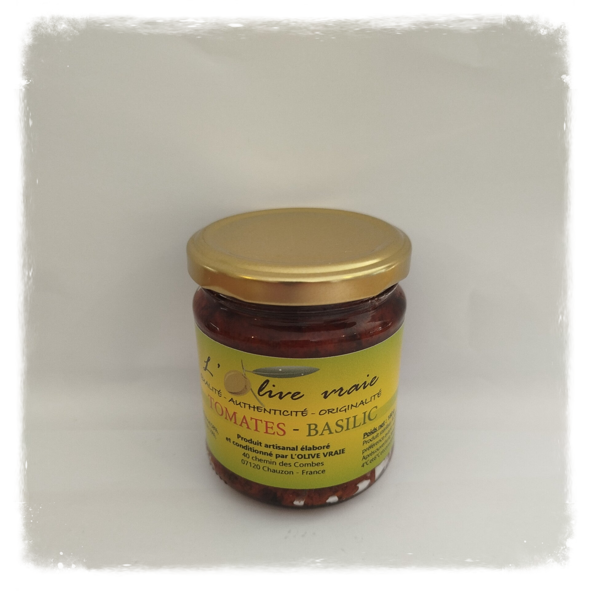 Le velours de tomate basilic, se compose principalement de tomates séchées mixées et confites dans de l'huile de colza et de basilic frais cultivé dans les Alpes-de-Haute-Provence.